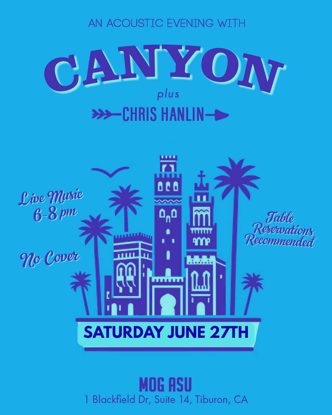 Come enjoy live music, drinks and food from 6-8pm with Canyon! This is a special additional night of music!