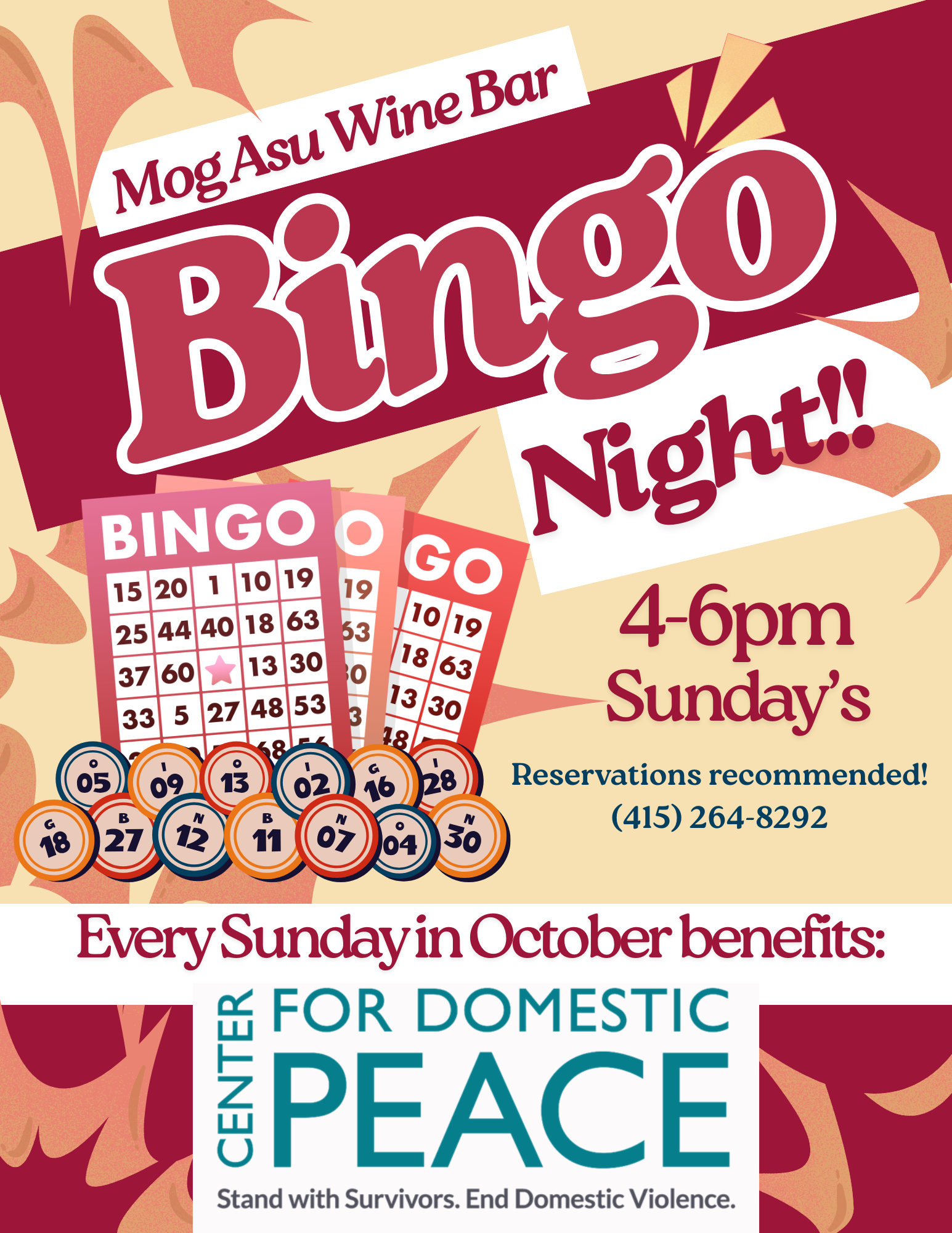 Bingo @ Mog Asu benefiting the Center for Domestic Peace